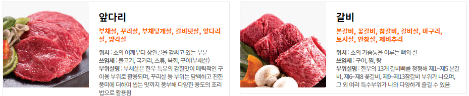그리고 본갈비, 꽃갈비, 갈비살을 포함하여 구이용으로 선호하는 토시살, 안창살, 제비추리가 모두 갈비에 해당하는 부위입니다.