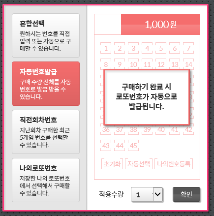 지난 회차 구매 번호와 동일한 번호로 구매를 희망하시는 경우 선택하시면 됩니다.