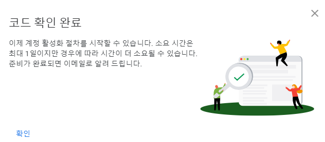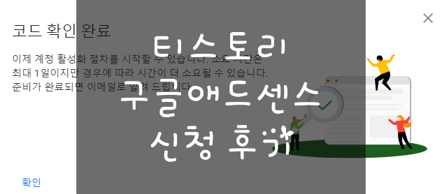 [코드 확인 완료] 팝업이 뜨면 애드센스 신청이 완료 된 것입니다.