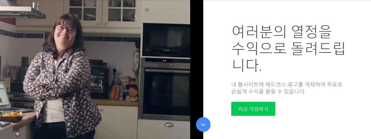 구글 애드센스 홈페이지를 방문하면 [지금 가입하기]버튼이 활성화 되어 있습니다.