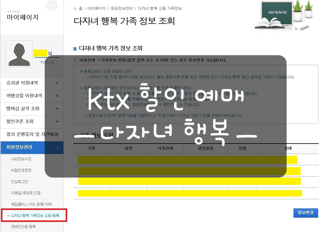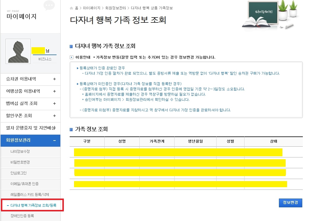 코레일 사이트에서 [다자녀 행복] 등록하는 방법