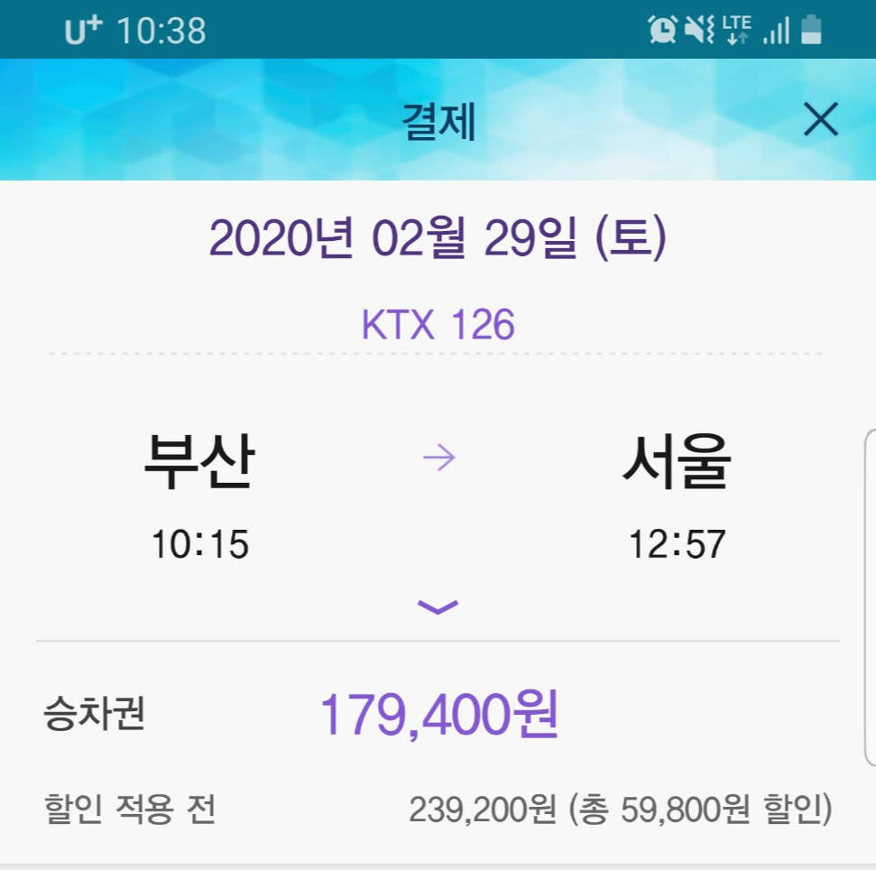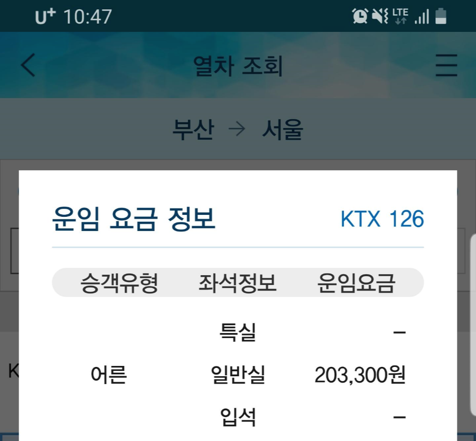 KTX를 이용하여 편리하게 이동 할 수 있지만 사실 상당히 부담되는 금액입니다.