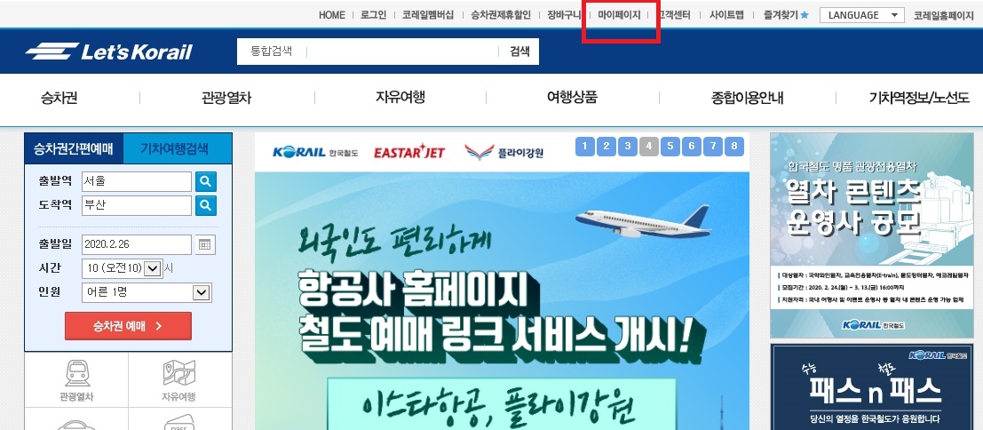 1. 코레일 홈페이지 방문(www.letskorail.com)