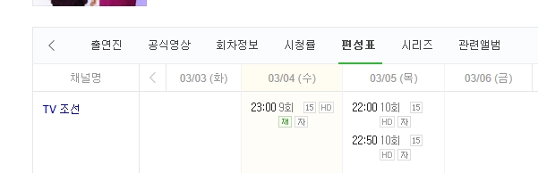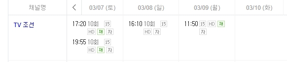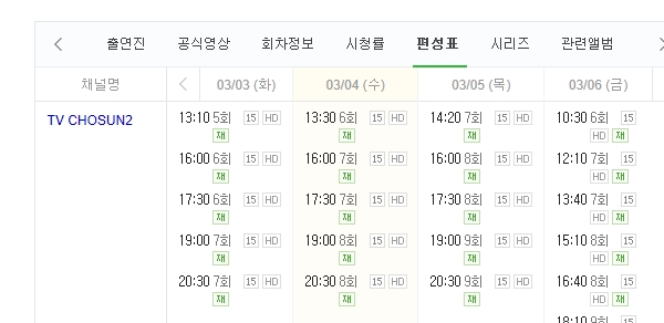 TV CHOSUN 2 재방송 편성표(3월 3일 ~ 10일)*