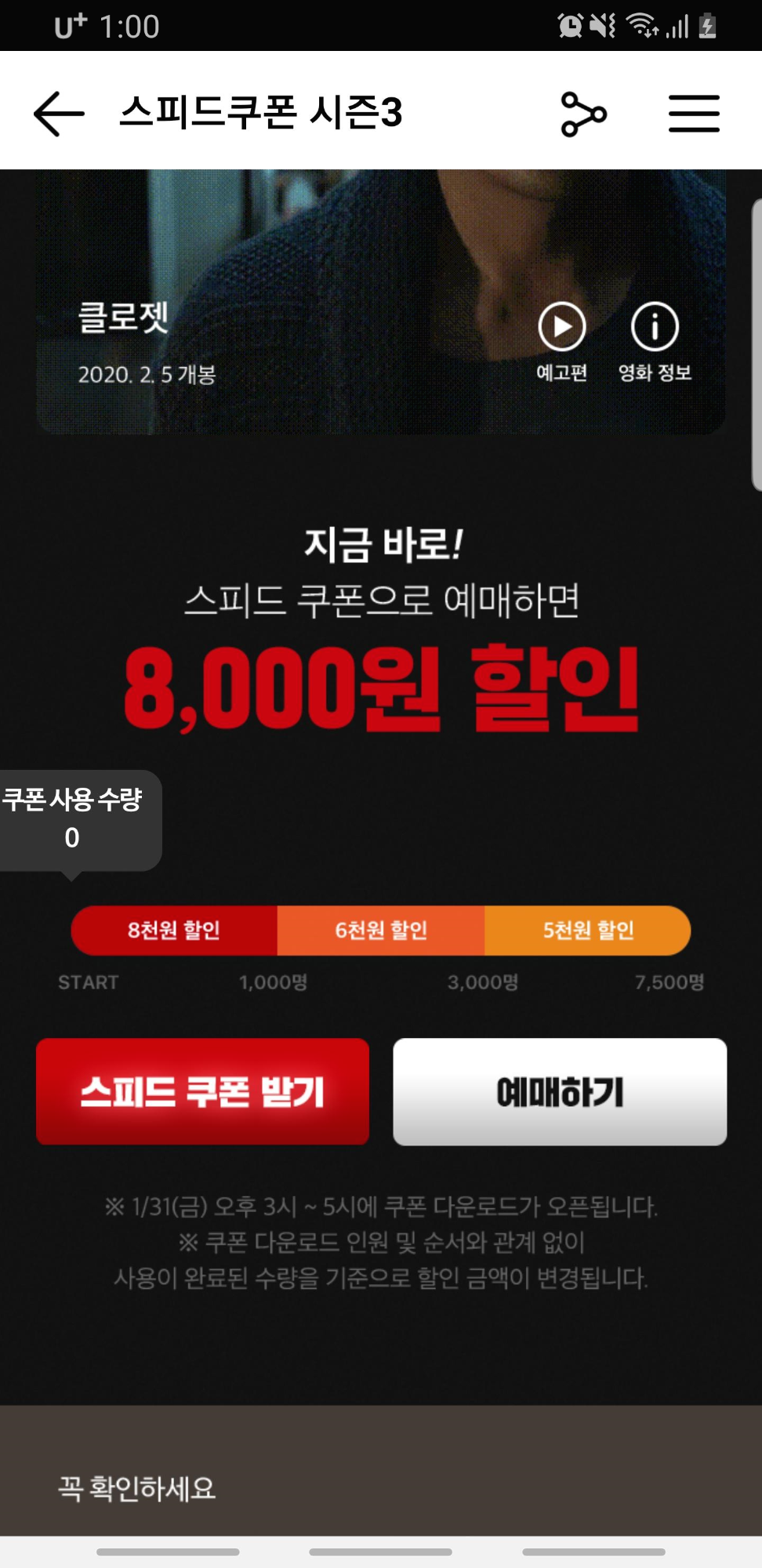 CGV에서는 흥행 기대작에 대해 스피드 쿠을 발행 해 줍니다.