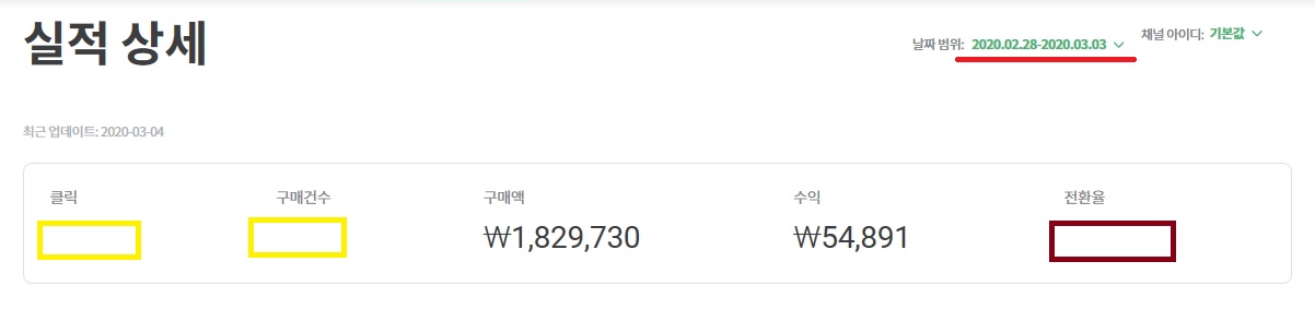쿠팡파트너스 (2.28~3.3) 5일간 수익