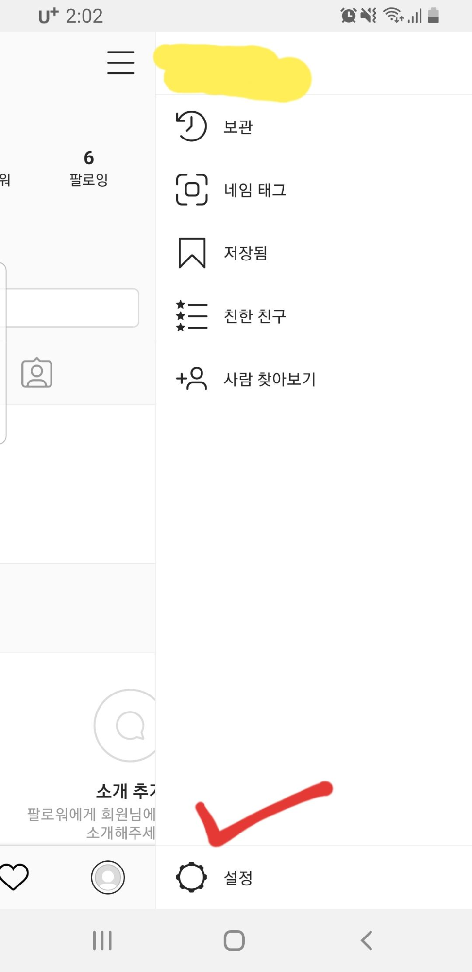1. 우선 인스타그램 어플을 켜고, 내 피드 오른쪽 상단의 3줄로 된 곳을 클릭하면 하단에 [설정]이라는 메뉴가 있습니다.