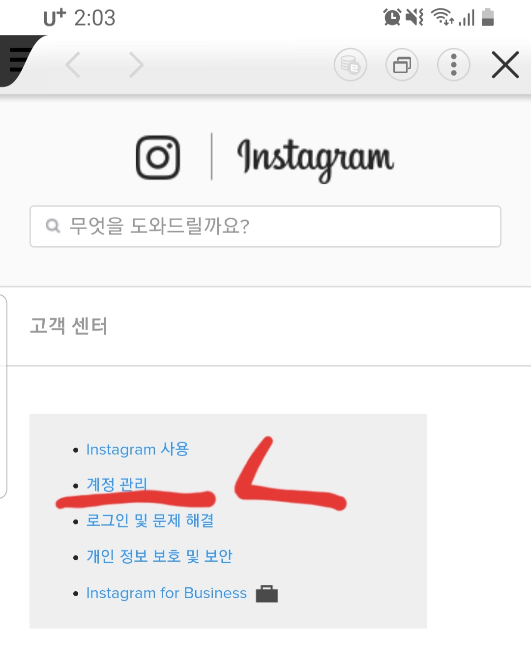 2. [도움말]에서 [고객센터]를 클릭하고 나면 [계정관리]가 보입니다. 정말 꼭꼭 숨겨두었네요.
